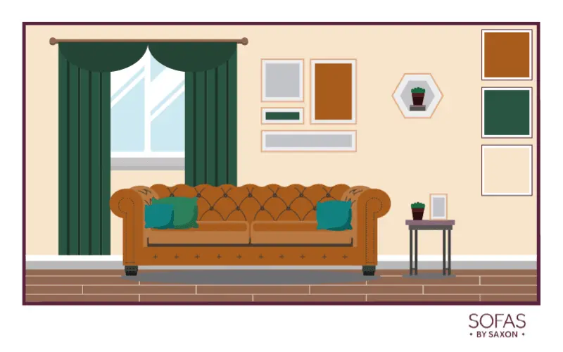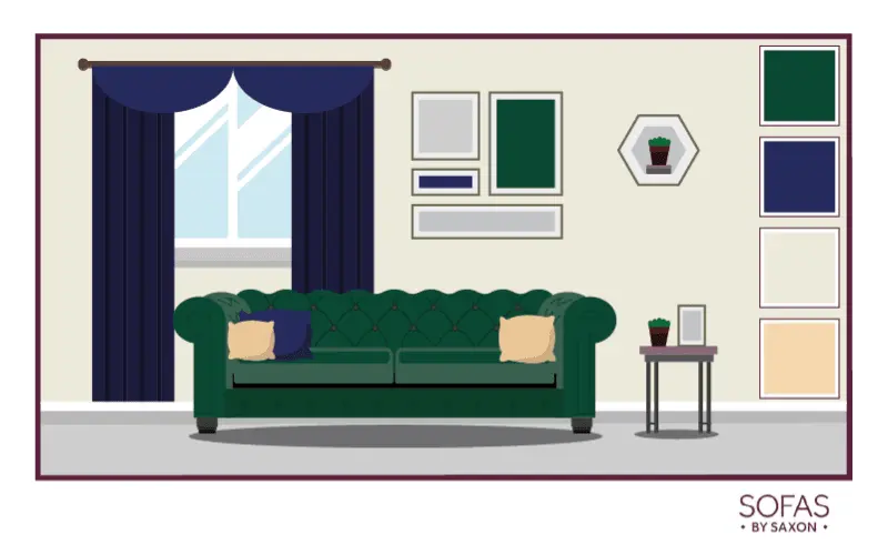 Green is a colour that’s very much associated with the great outdoors, so it makes sense that it works well with other earth-inspired hues. This means your green sofa is likely to look great against a white, cream, or possibly even a taupe wall.