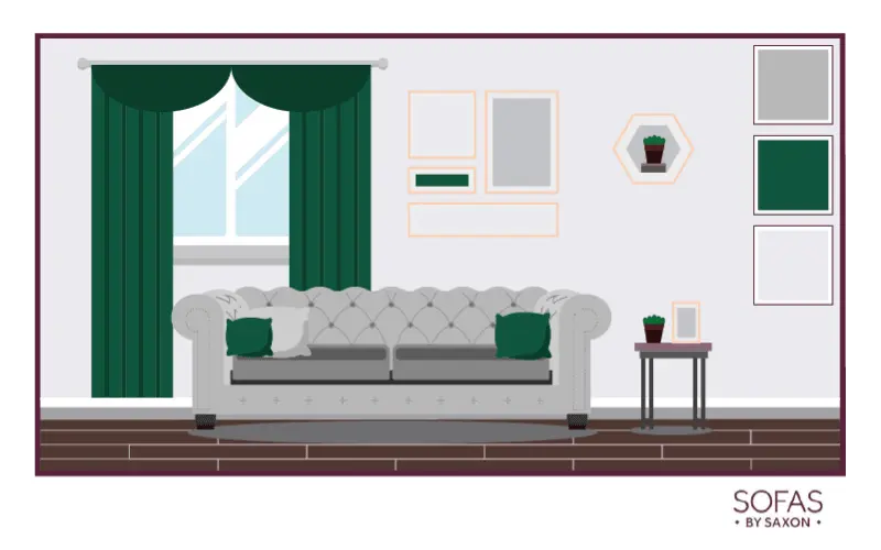 What colour curtains go with a green sofa?